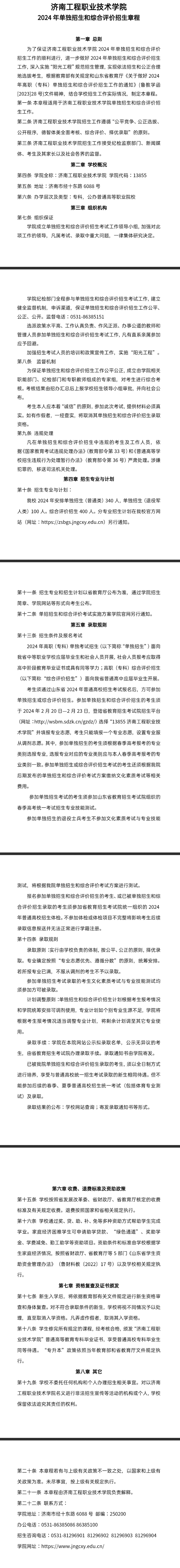济南工程职业技术学院2024年单独招生和综合评价招生章程